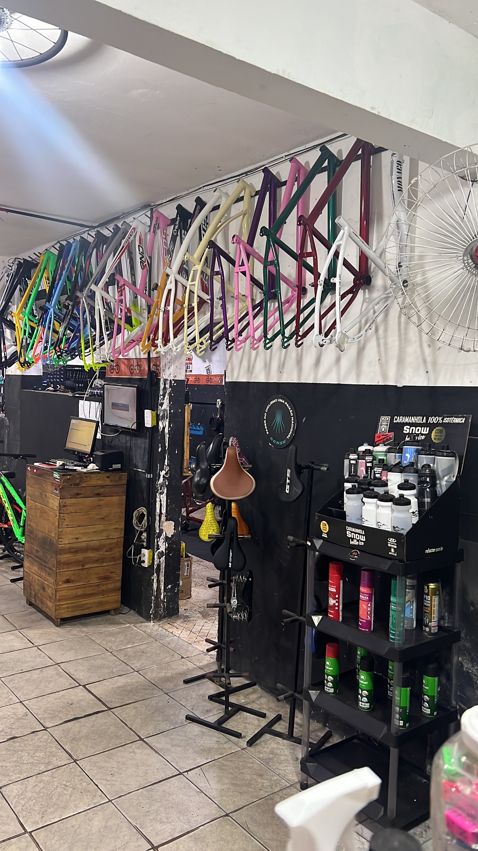 “Em nossa loja, oferecemos uma ampla variedade de peças e serviços especializados para bicicletas, garantindo que sua bike esteja sempre em ótimo estado. Além disso, contamos com uma seleção de acessórios e vestuário de alta qualidade para ciclistas, proporcionando conforto e performance nas suas pedaladas. Seja para manutenção, upgrade ou para se equipar com os melhores produtos, estamos aqui para atender todas as suas necessidades de ciclismo.”